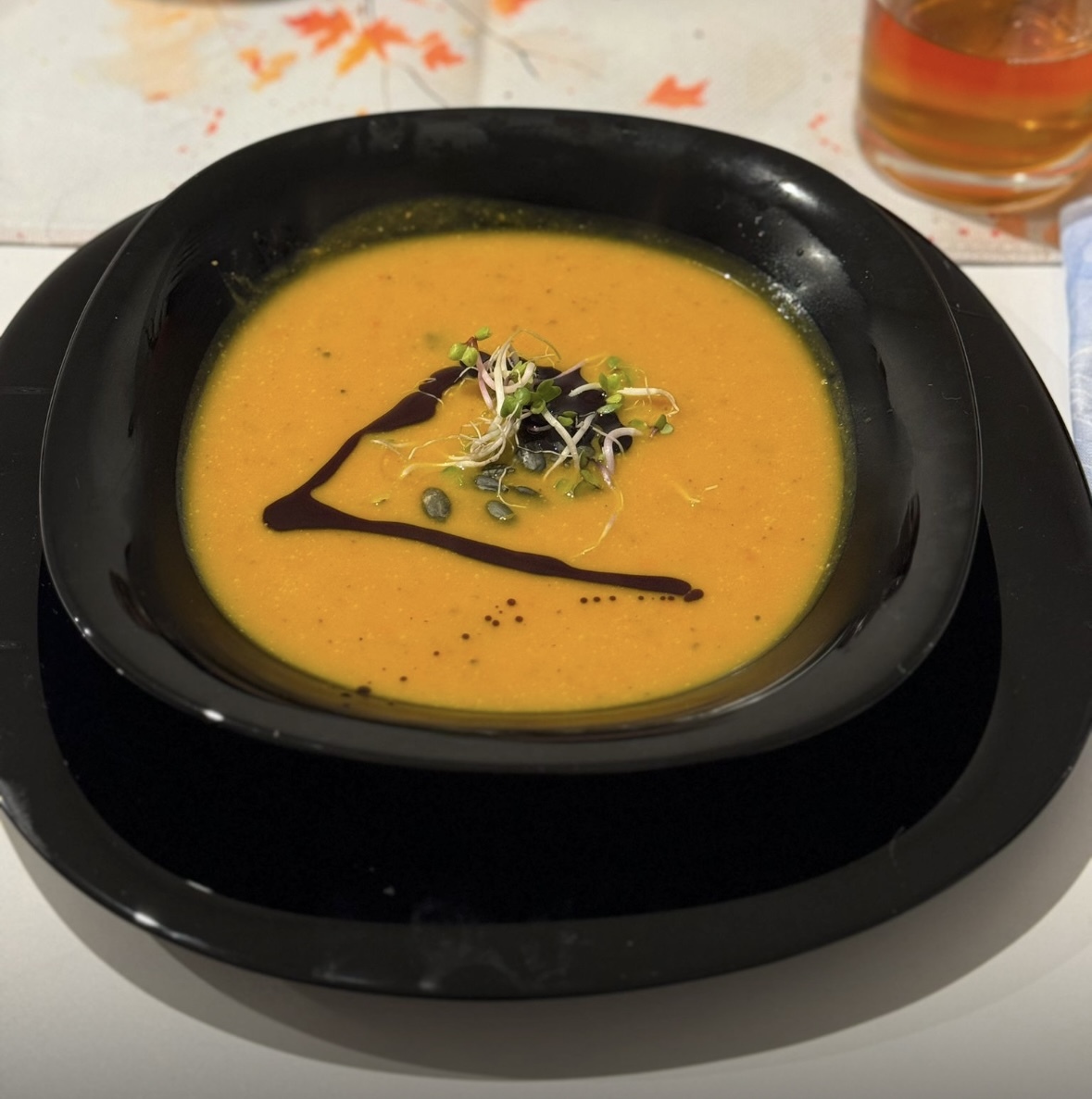 Dýňový krém se slunečnicovými semínky a krutóny 75,-